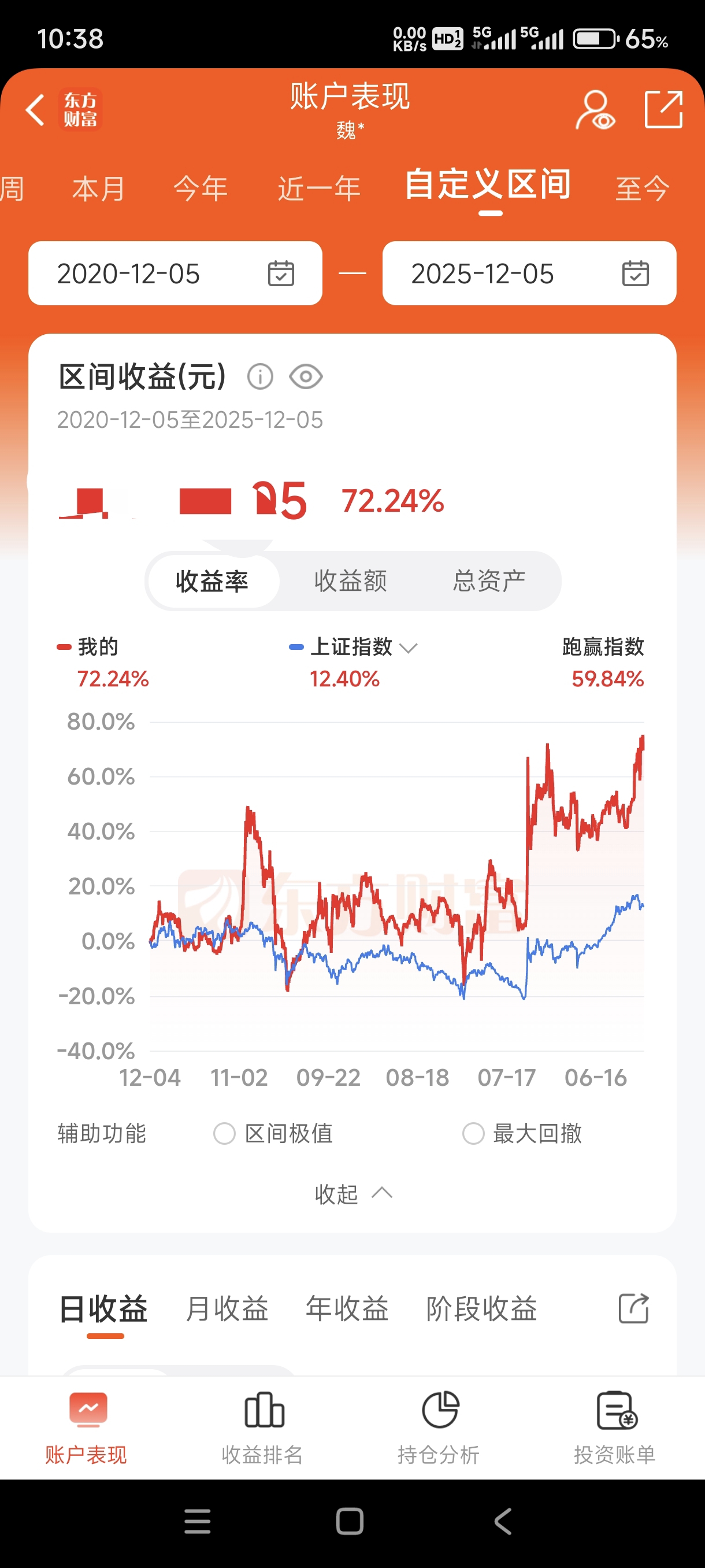 五年收益72%有点低。做T成功95.5%。清仓胜率97%。我要拜师提高成绩!
