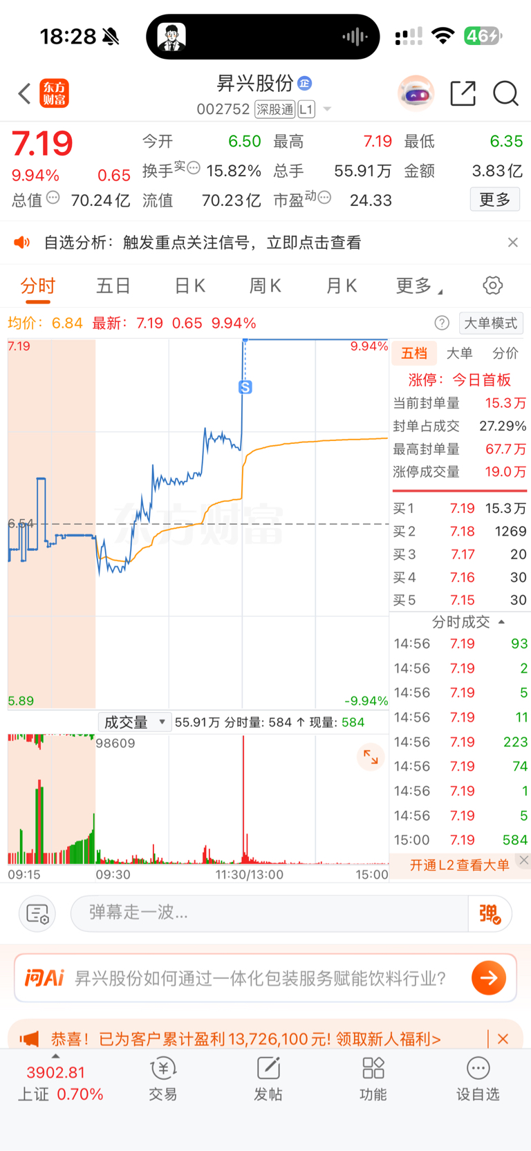 $昇兴股份(SZ002752)$ 挣了5个点 卖了