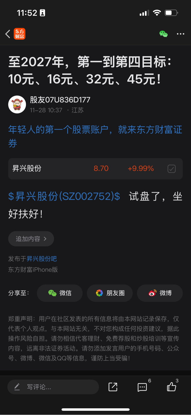 温馨提示: 1.根据《证券法》规定,禁止编造、传播虚假信息或者误导性信息,扰乱证券市场;2.用户在本社区发表的所有资料、言论等仅代表个人观点,与本网站立场无关,不对您构成任何投资建议。用户应基于自己的独立判断,自行决定证券投资并承担相应风险。《东方财富社区管理规定》