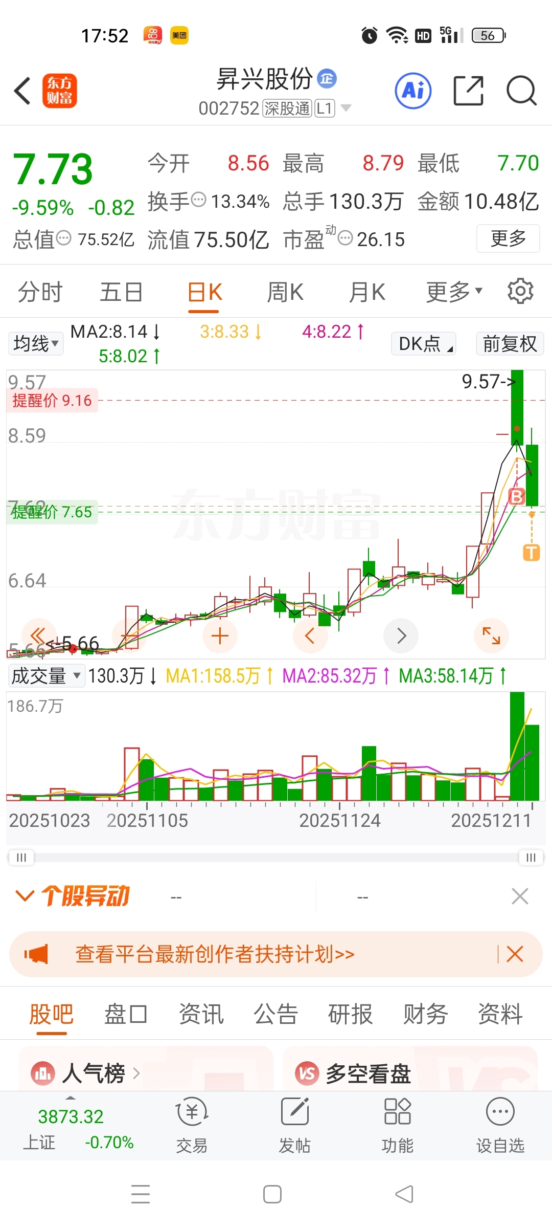 $昇兴股份(SZ002752)$ 下面破了再看卖,不破就不动