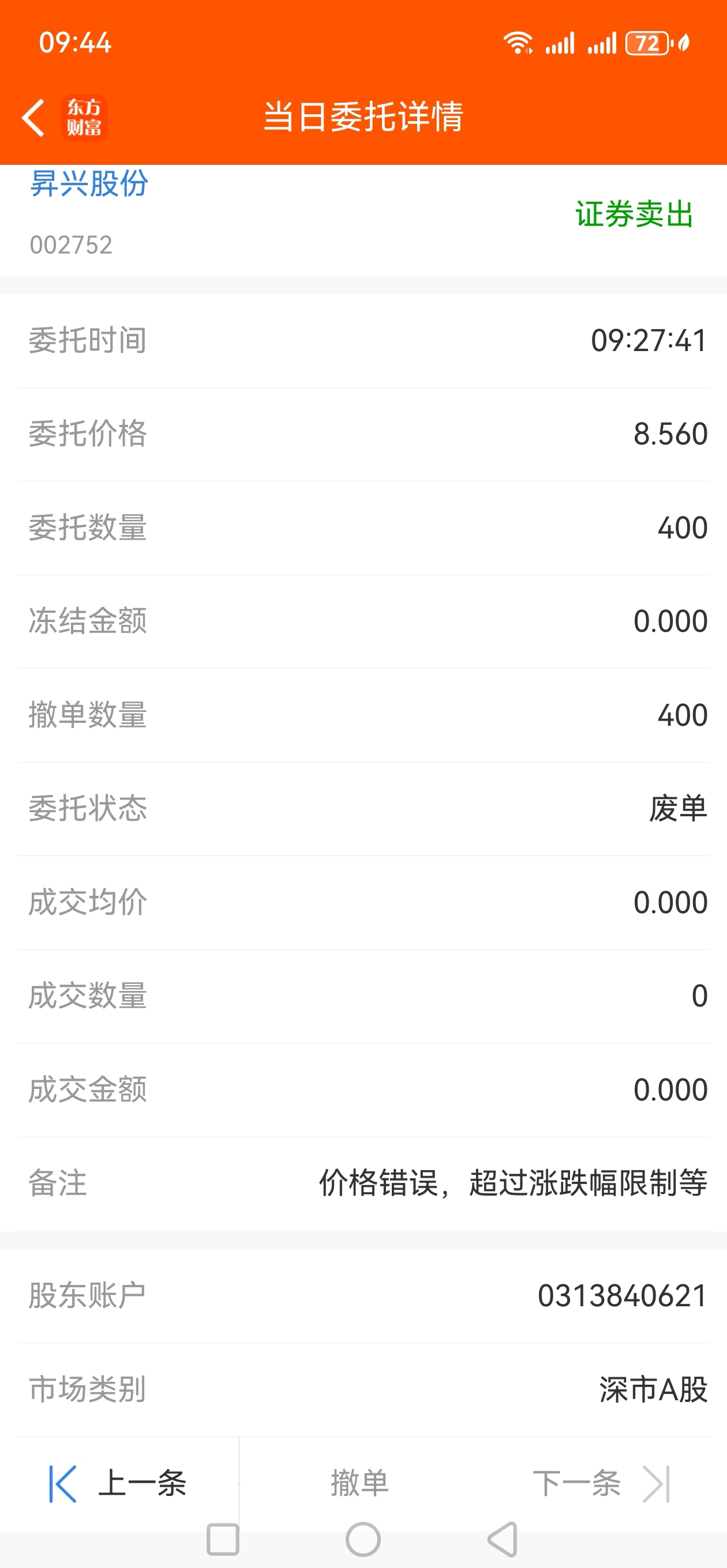 昨天9点27分以开盘价委托卖出被判废单,谁懂解释一下!
