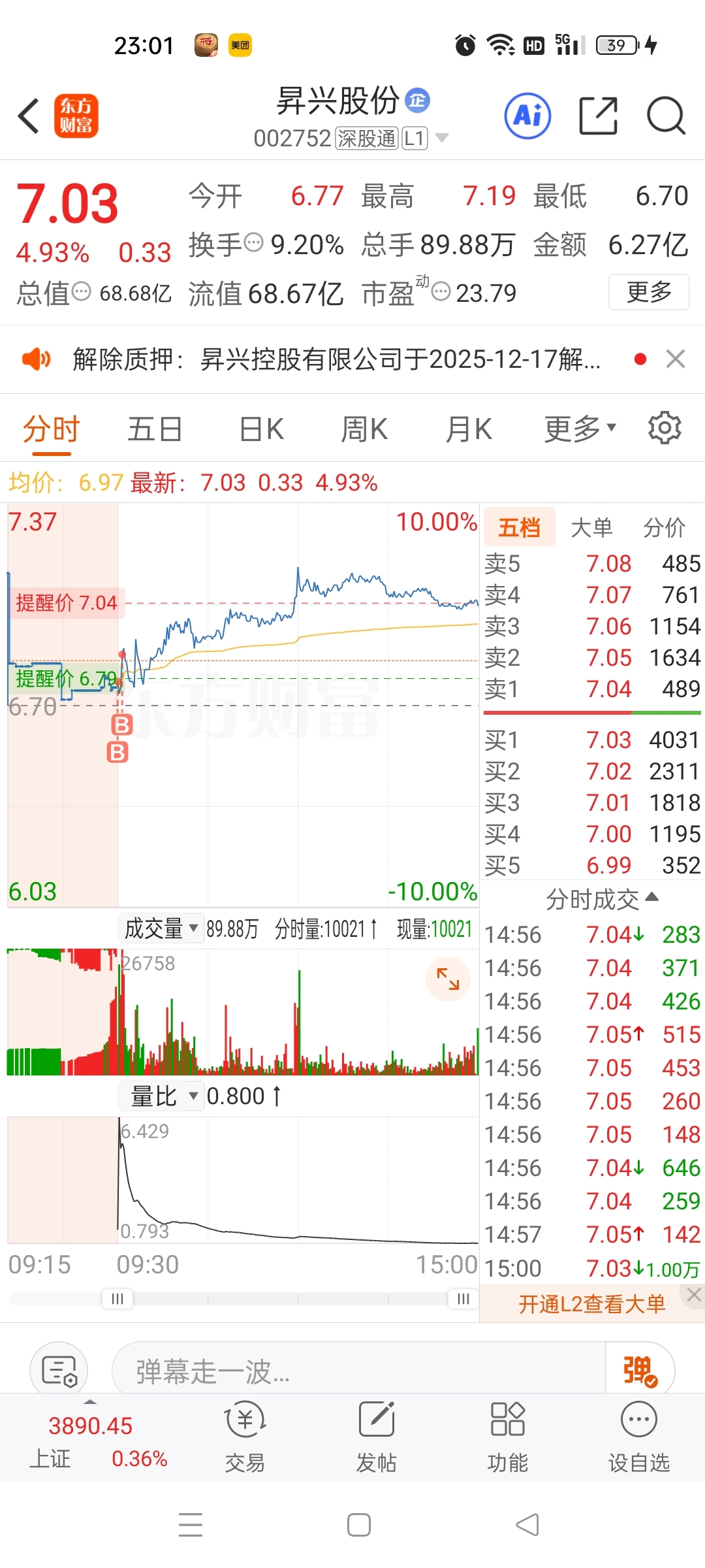 $昇兴股份(SZ002752)$ 7.04均价上不去,还是被左侧控盘了量能不够