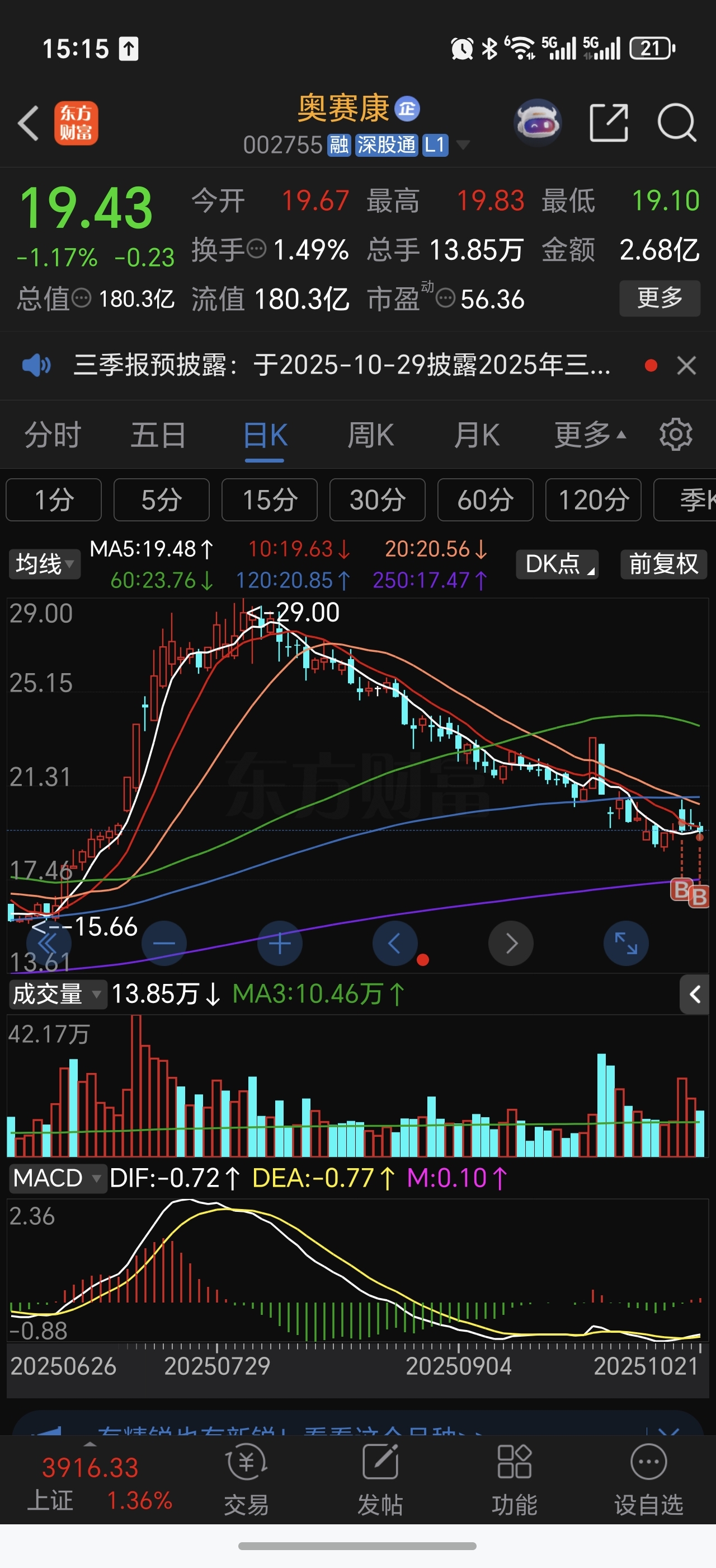 $奥赛康(SZ002755)$ 实话实说,反正我是19.5本,主力你看着办,亏5个点以上我就再补点