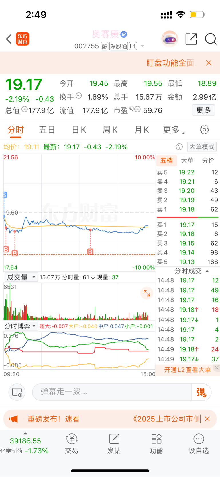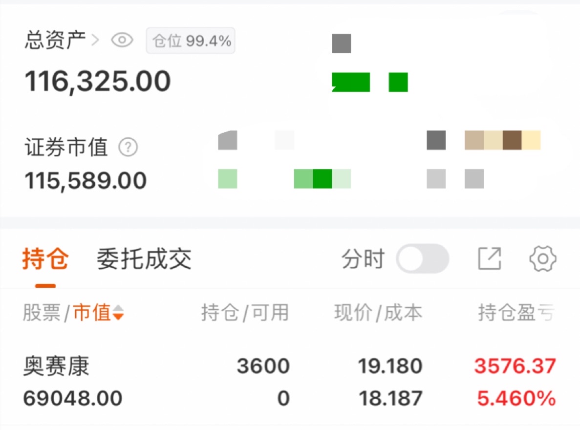 ,目前在奥赛康只保持六成仓,耐心持有,希望能再有一次上涨的机会