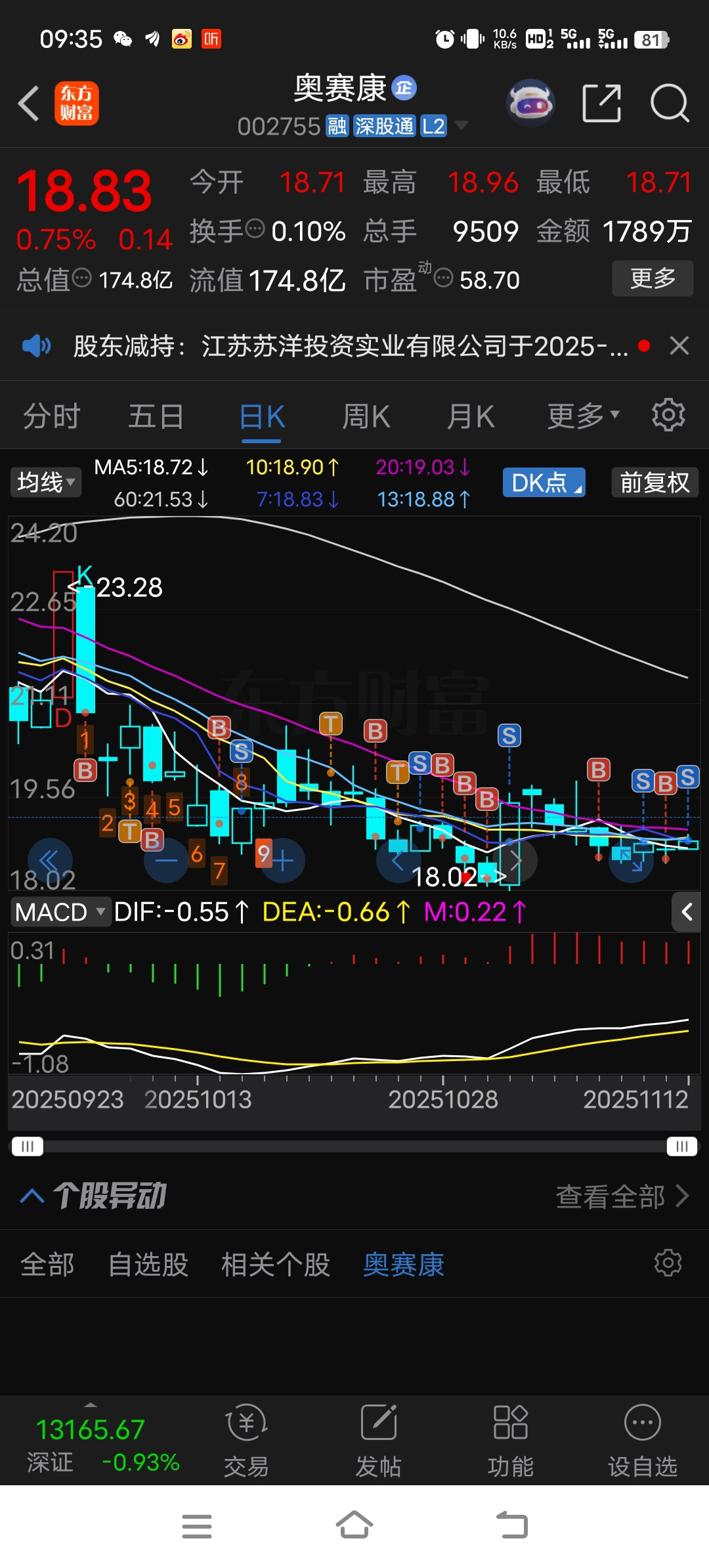 $奥赛康(SZ002755)$ 18.55-18.85元再次3毛