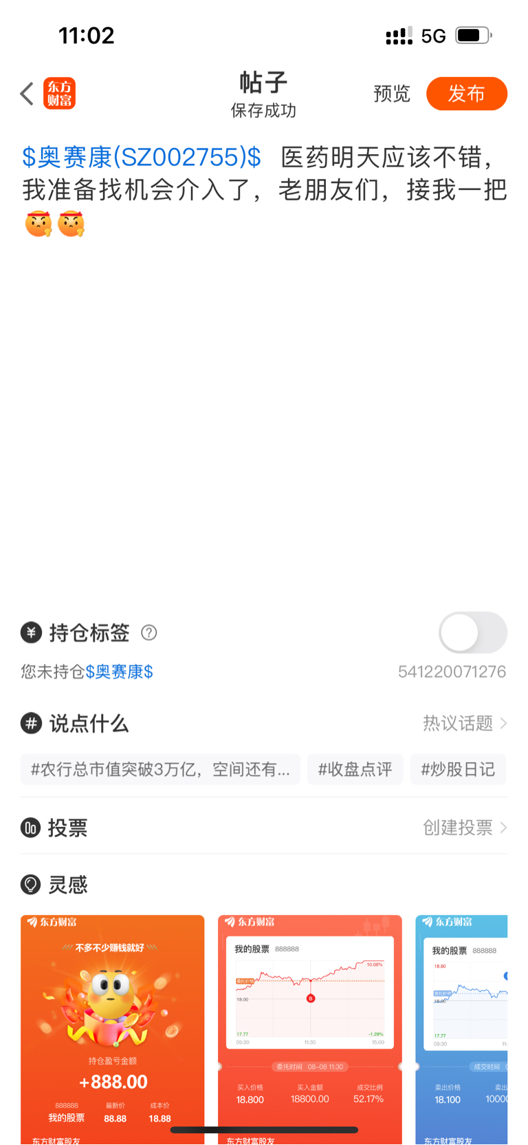 $奥赛康(SZ002755)$ 医药明天应该不错,我准备找机会介入了,老朋友们,接我一把