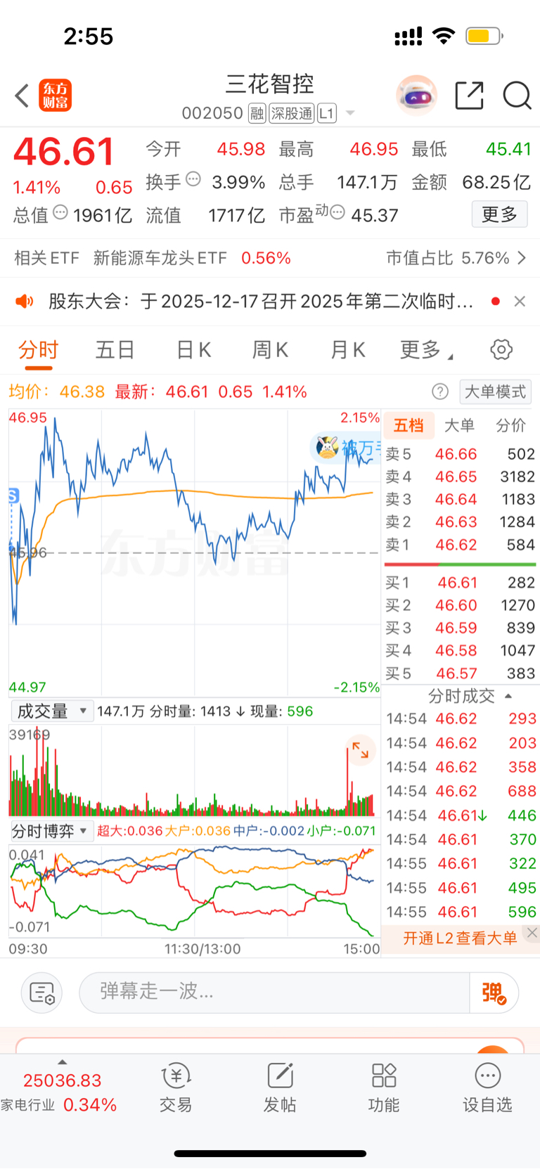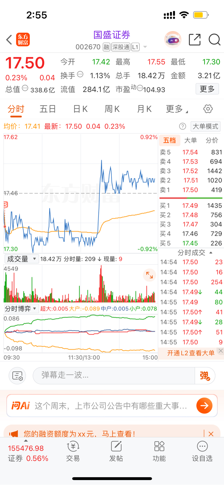 今天为啥没钱呢?前两天不是把奥赛康卖了去买三花了嘛,今天三花清了跑国盛证券了。如