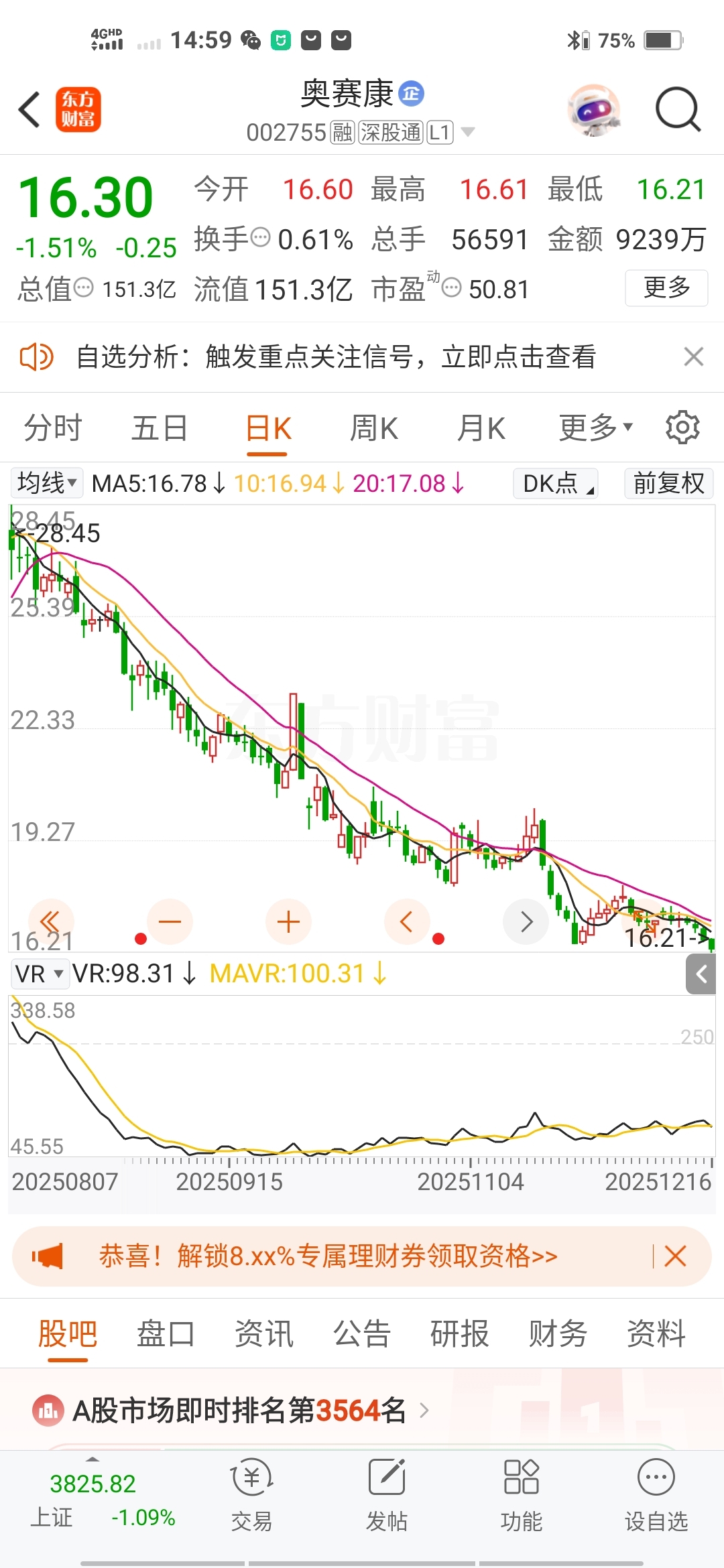 $奥赛康(SZ002755)$ 都 跌成这个币样,你指望它能反弹到什么币程度