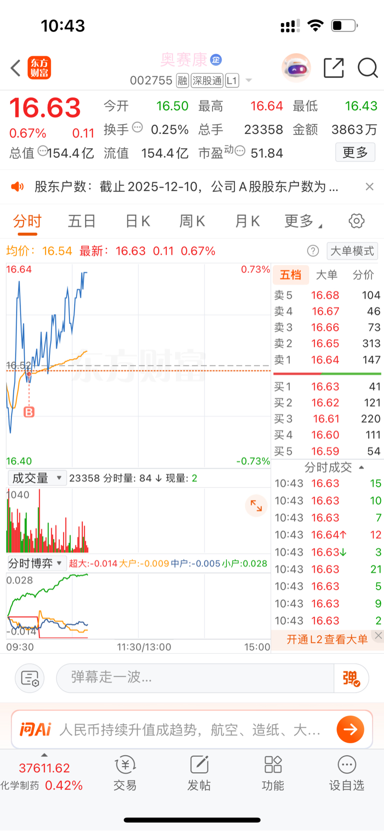 $奥赛康(SZ002755)$ 周五清仓,今日重新建仓,以上