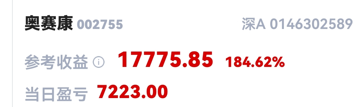 $奥赛康(SZ002755)$ 拜拜啦各位,短线挣一个月生活费,卖早了