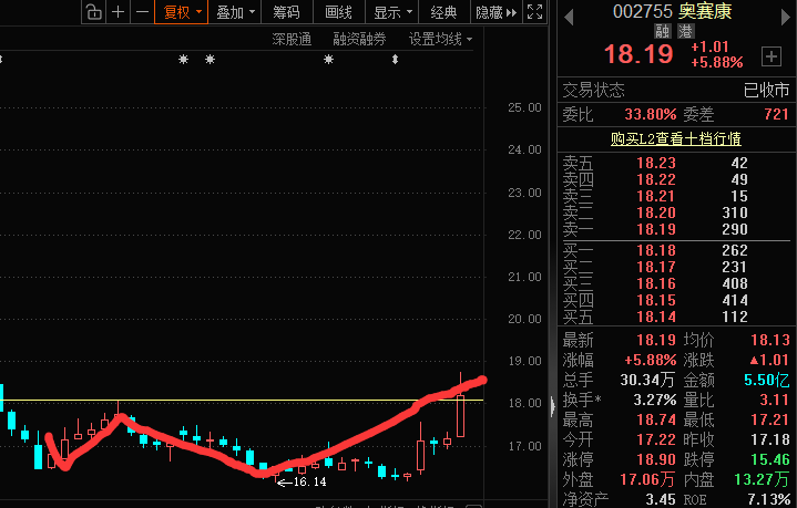 奥赛康黄线(庄家成本线),自救回血,回血结束,卖出了结。