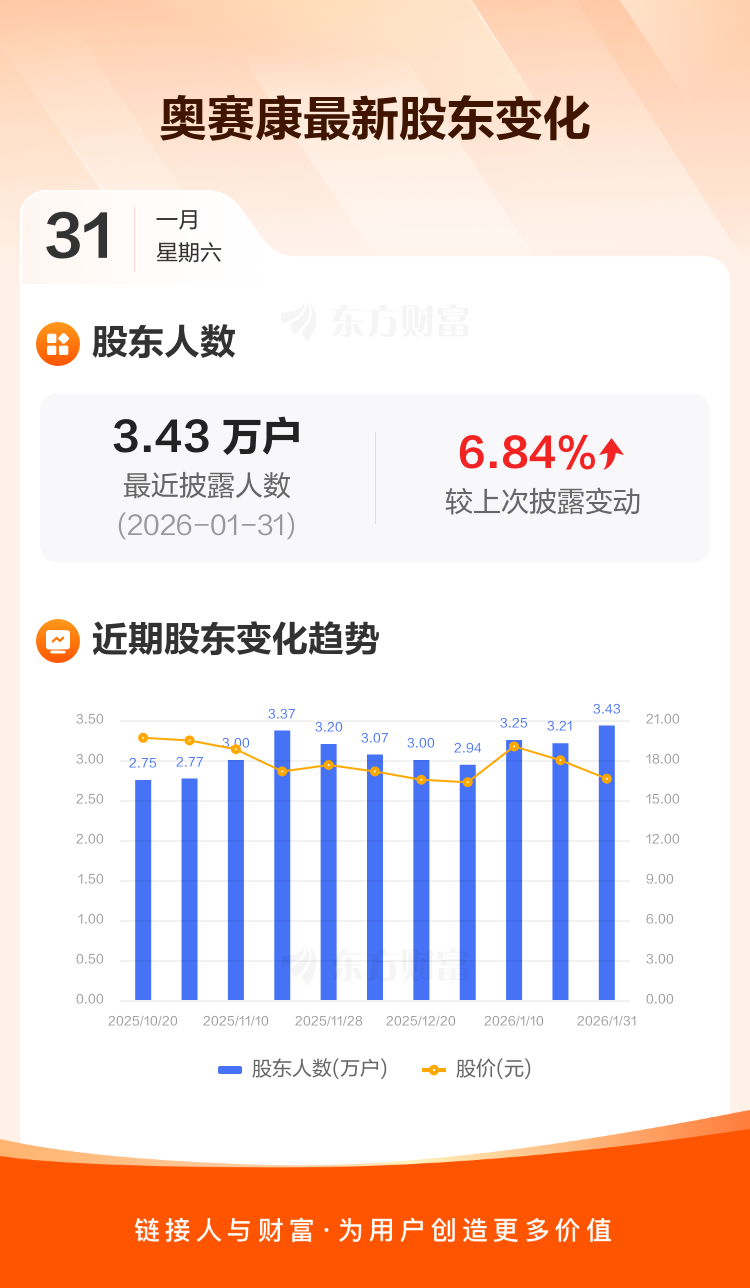 奥赛康:截至1月31日最新股东户数3.43万户,较上期增加6.84%