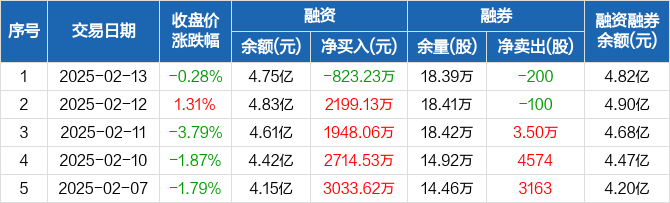 永兴材料:融资净偿还823.23万元,融资余额4.75亿元(02-13)