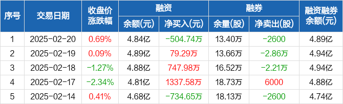 永兴材料:融资净偿还504.74万元,融资余额4.84亿元(02-20)