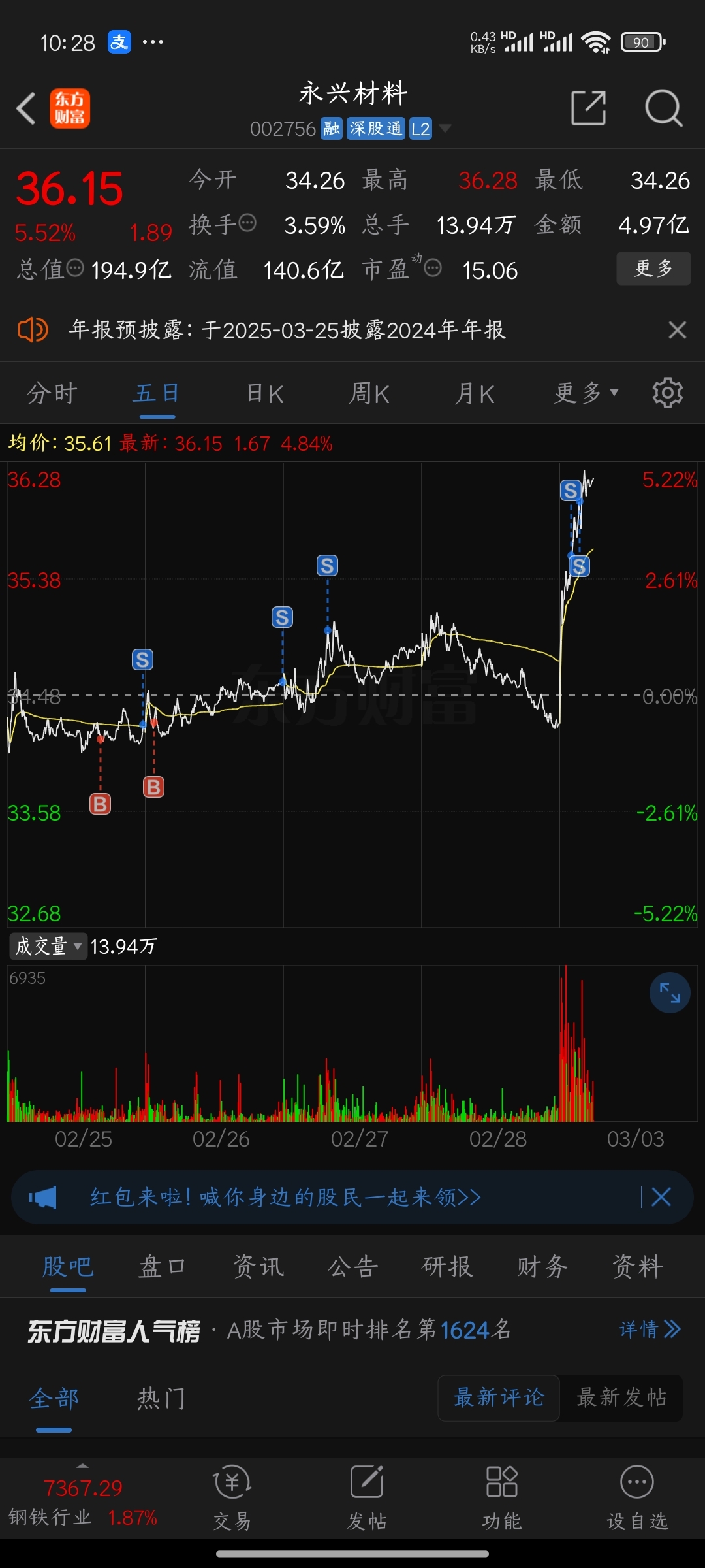 $永兴材料(SZ002756)$ 我已经卖光了,别让我失望,知道你的尿性