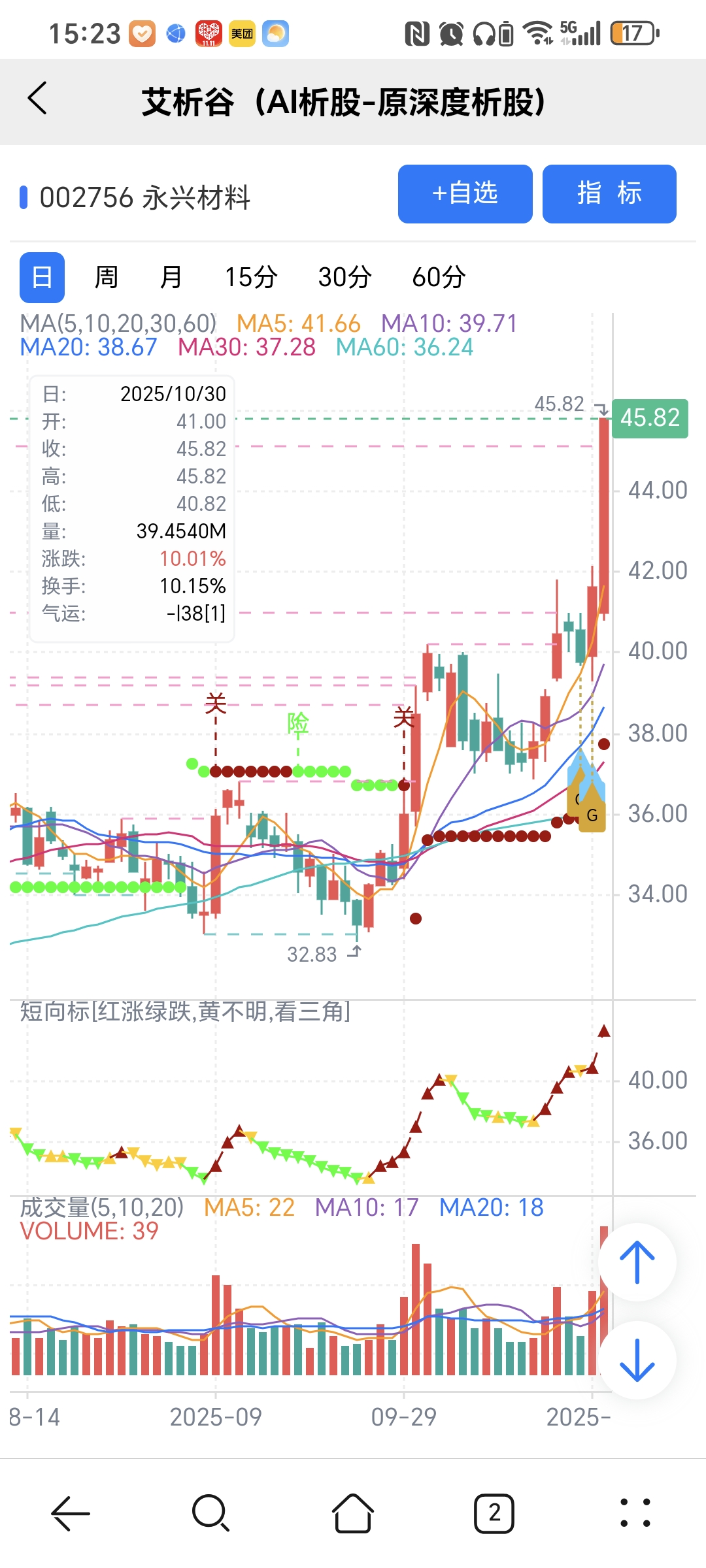 红绿小圆点是艾析谷的量化指标-超级短趋线,是趋势跟踪+突破类的量化指标,完全免费。