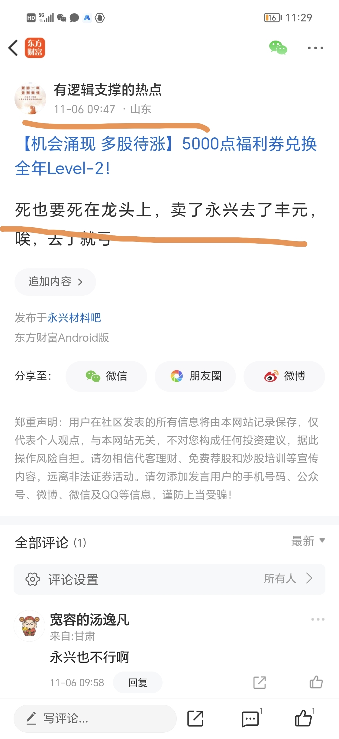 温馨提示: 1.根据《证券法》规定,禁止编造、传播虚假信息或者误导性信息,扰乱证券市场;2.用户在本社区发表的所有资料、言论等仅代表个人观点,与本网站立场无关,不对您构成任何投资建议。用户应基于自己的独立判断,自行决定证券投资并承担相应风险。《东方财富社区管理规定》