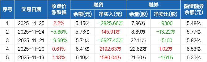 永兴材料:融资净偿还2825.66万元,融资余额5.45亿元(11-25)