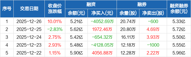 永兴材料:融资净偿还4052.69万元,融资余额5.21亿元(12-26)