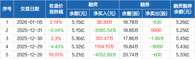 永兴材料:融资净买入38.3万元,融资余额5.15亿元(01-05)