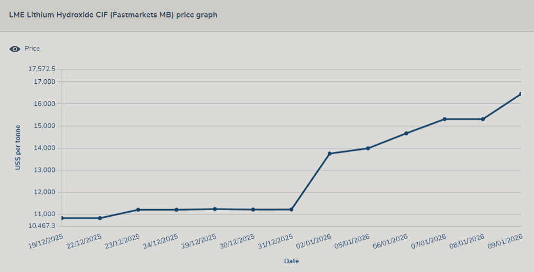 LME国际氢氧化锂价格走势(图)几天时间,涨了50CM