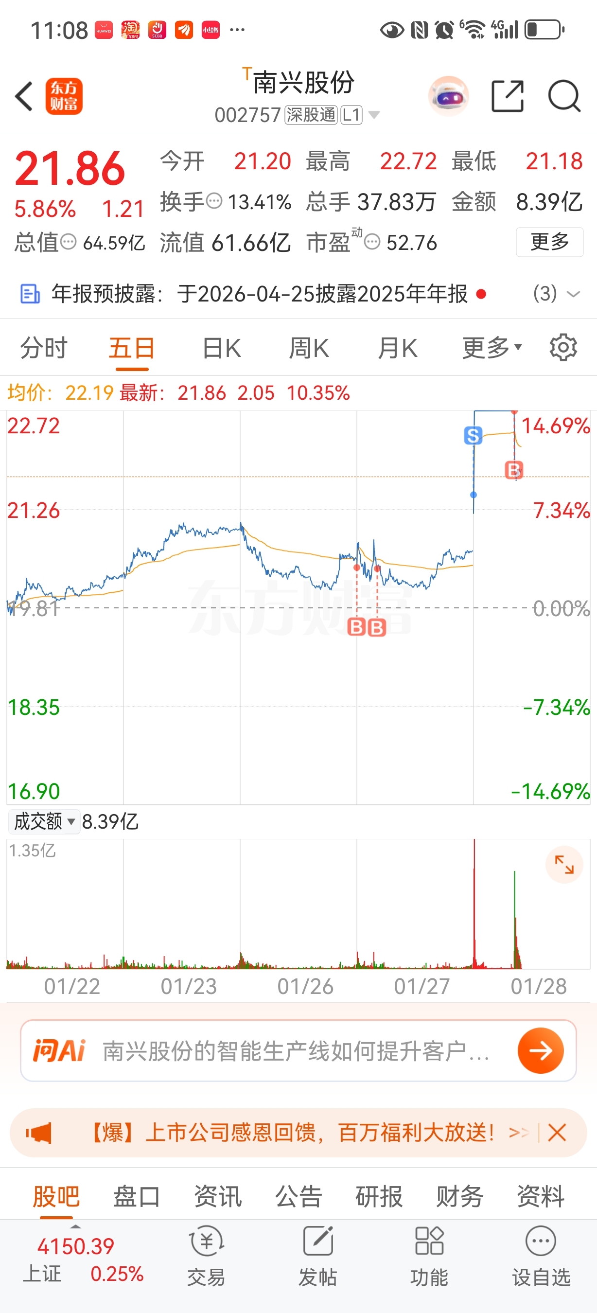 $南兴股份(SZ002757)$ 早上冲高卖了我后悔了 打板回来吃面 不过依然看好
