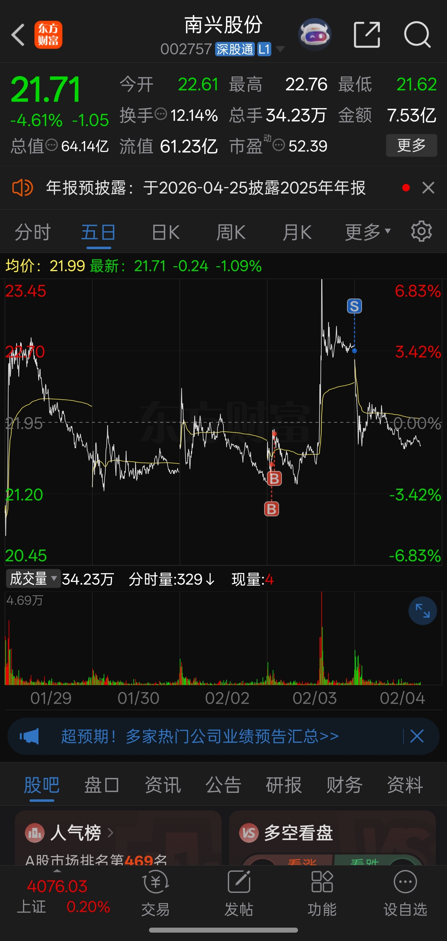 $南兴股份(SZ002757)$ 昨天进 今天竞价出 跑慢就嘎