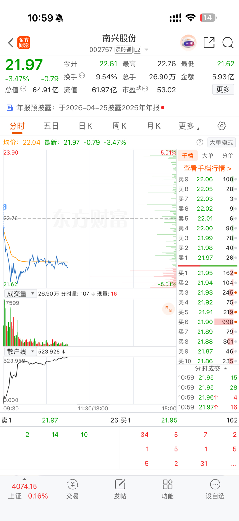 $南兴股份(SZ002757)$ 明天真要大低开了 大家走吧啊 不要跟主力耗了 主力有钱过年你没有啊 浪费外面太空光伏大好行情