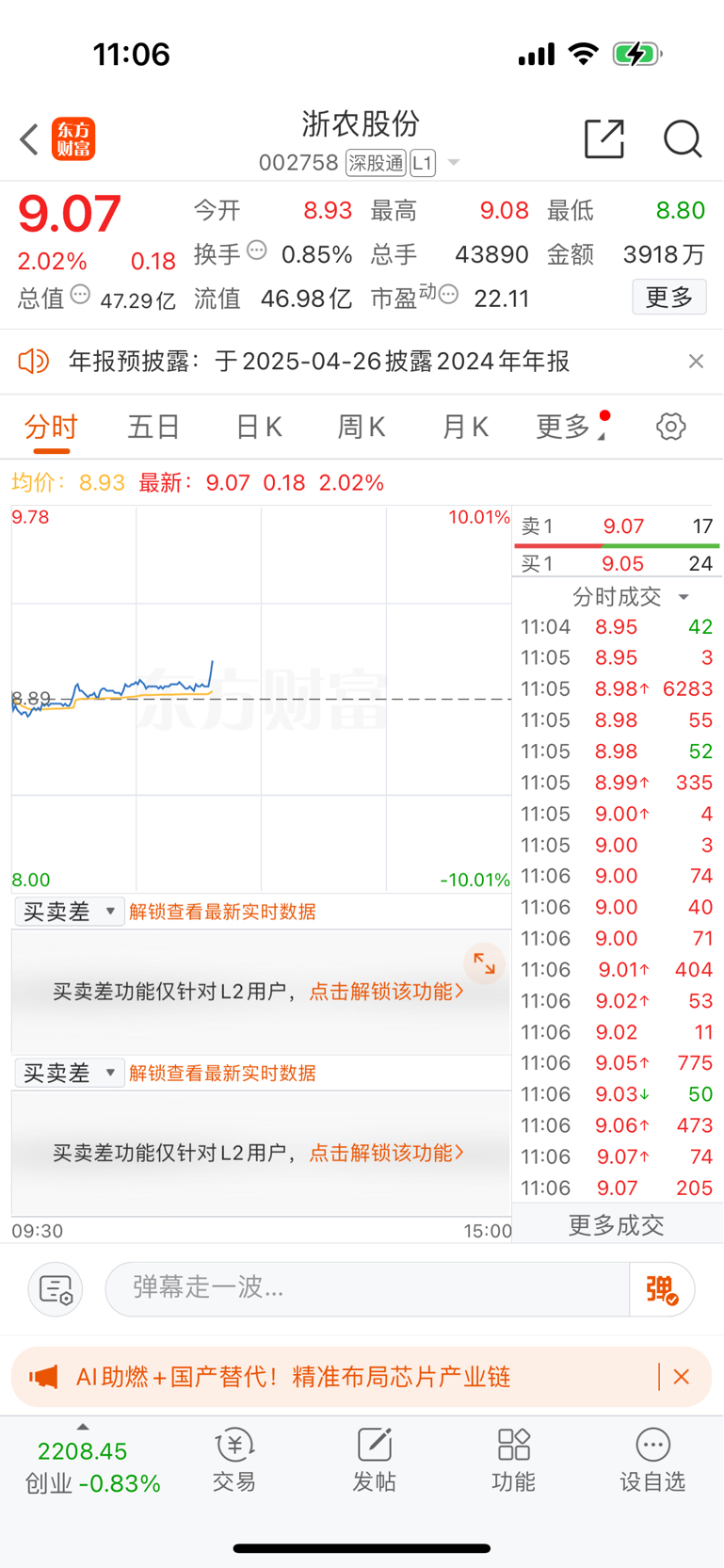 $浙农股份(SZ002758)$ 这个6283手,吃的爽
