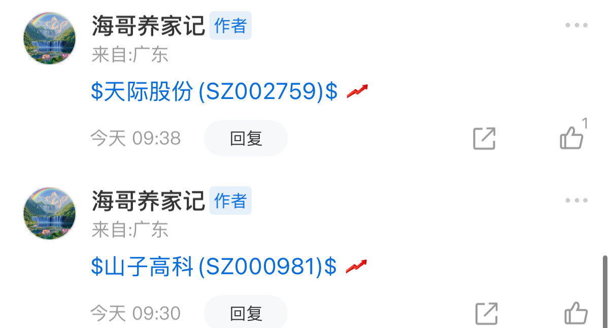 $天际股份(SZ002759)$ $山子高科(SZ000981)$ 经过假期这几天盘感也在逐步的提高今天的标的统统拿下 恭喜跟踪我文章的兄弟们!