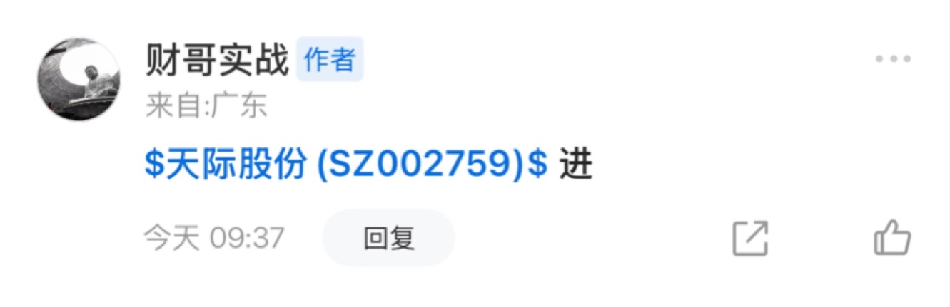 $天际股份(SZ002759)$ 推演再次被认证 财哥的实力就毋庸置疑了吧 近期电池板块小幅度增涨 今日早盘拿了个先手 所谓犹豫就会败北 没上车的老铁关注财哥方便后期能及时追踪到财哥的帖子