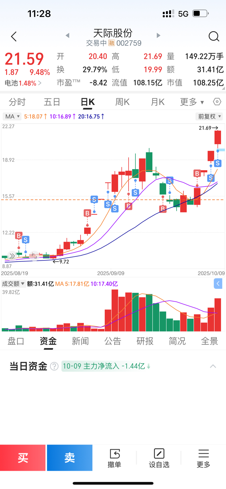 $天际股份(SZ002759)$ 与庄共振,走了,该强不强就是弱