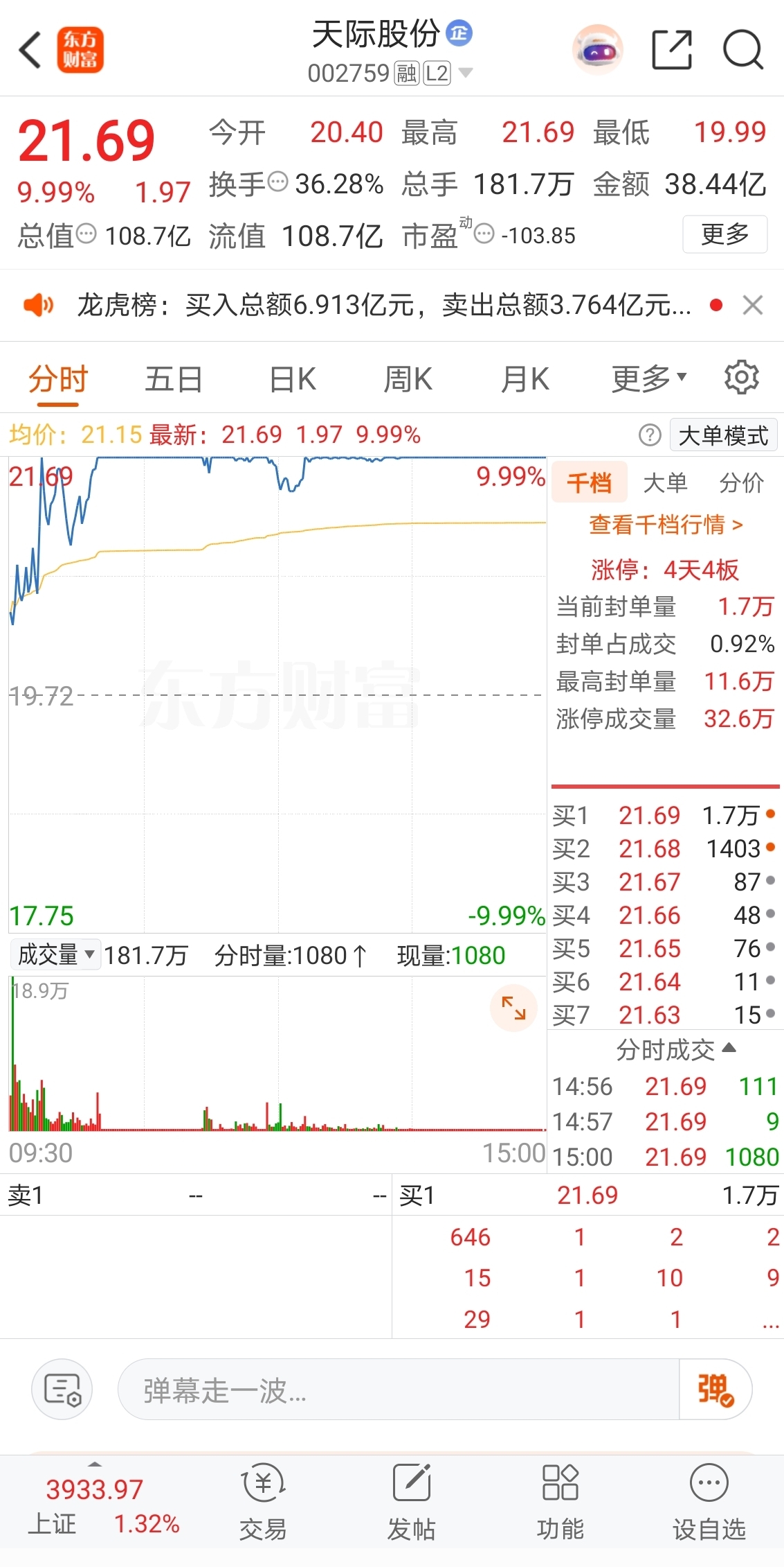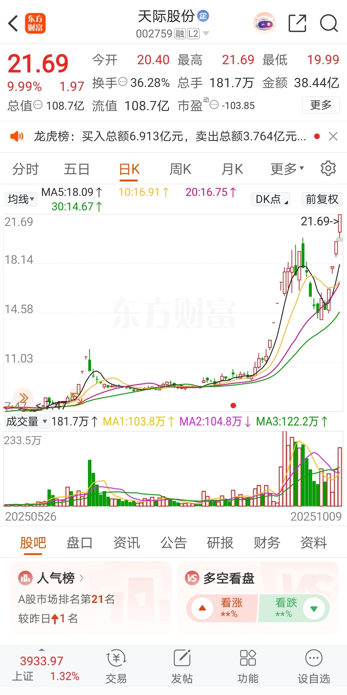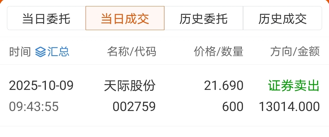 2025-10-09四连板涨停,选择在第四个涨停板价格21.69元卖出。