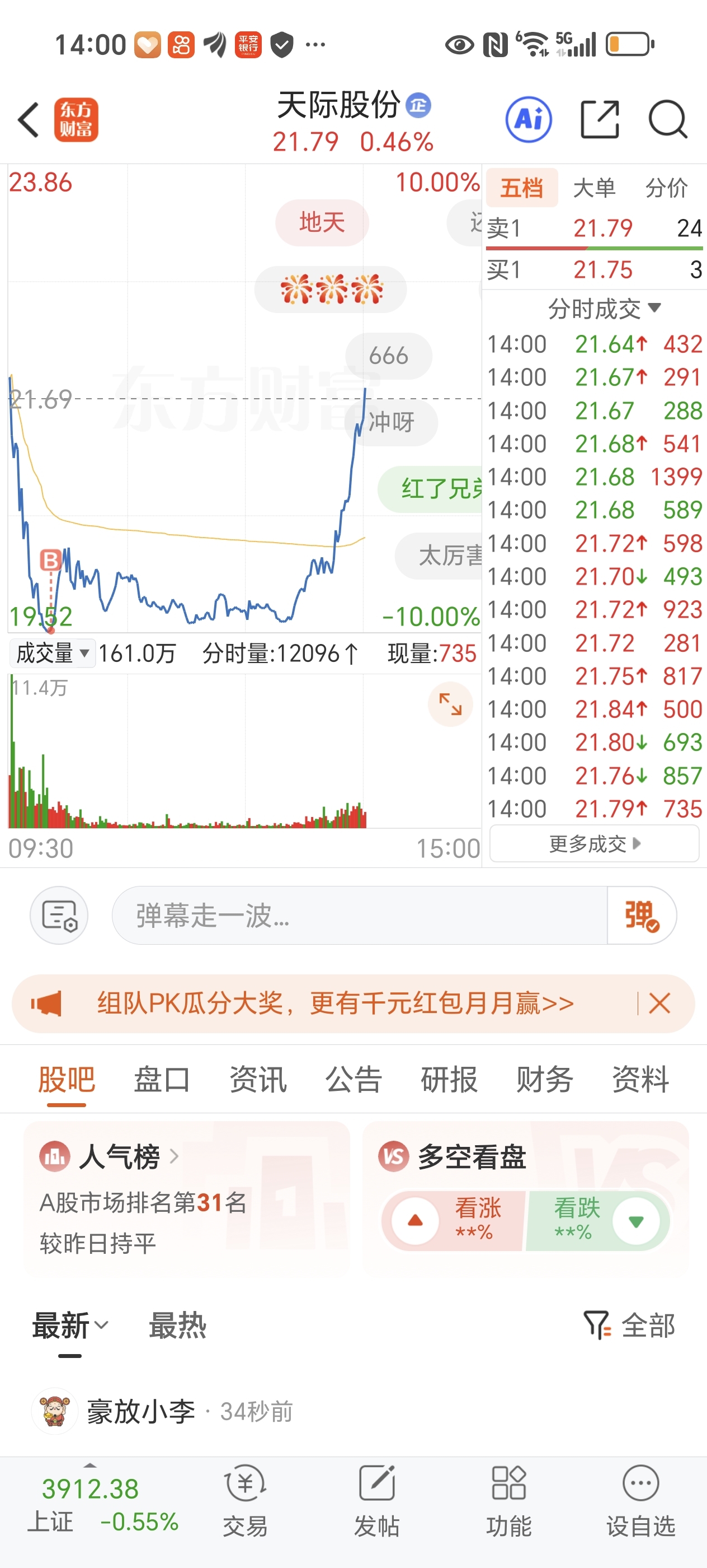 $天际股份(SZ002759)$ 只能说物极必反,赌赢了