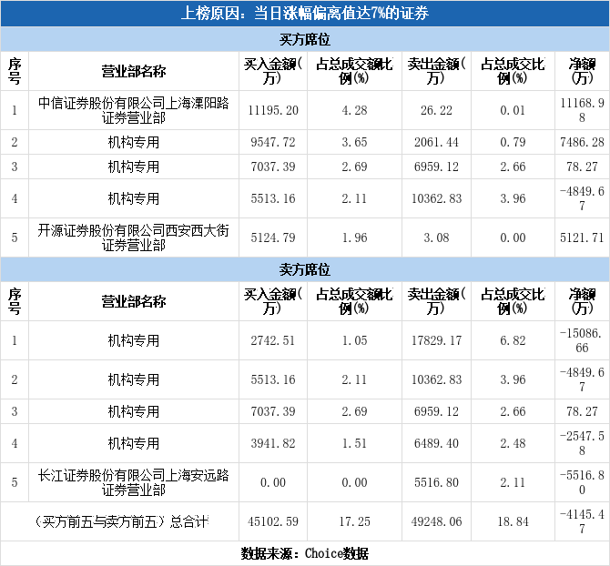 多主力现身龙虎榜,天际股份涨停(10-13)