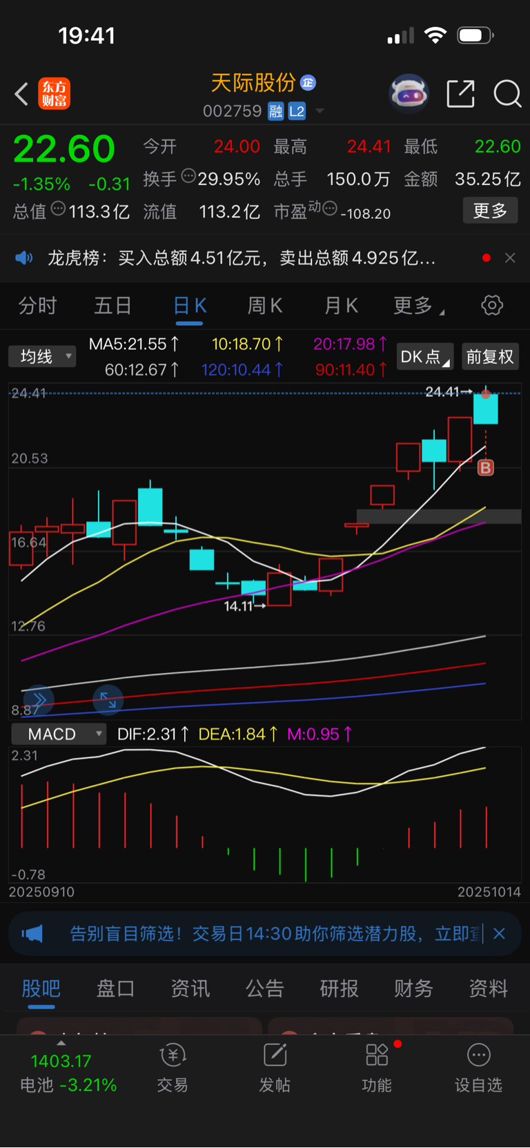 $天际股份(SZ002759)$ 成本线24.41!还有谁