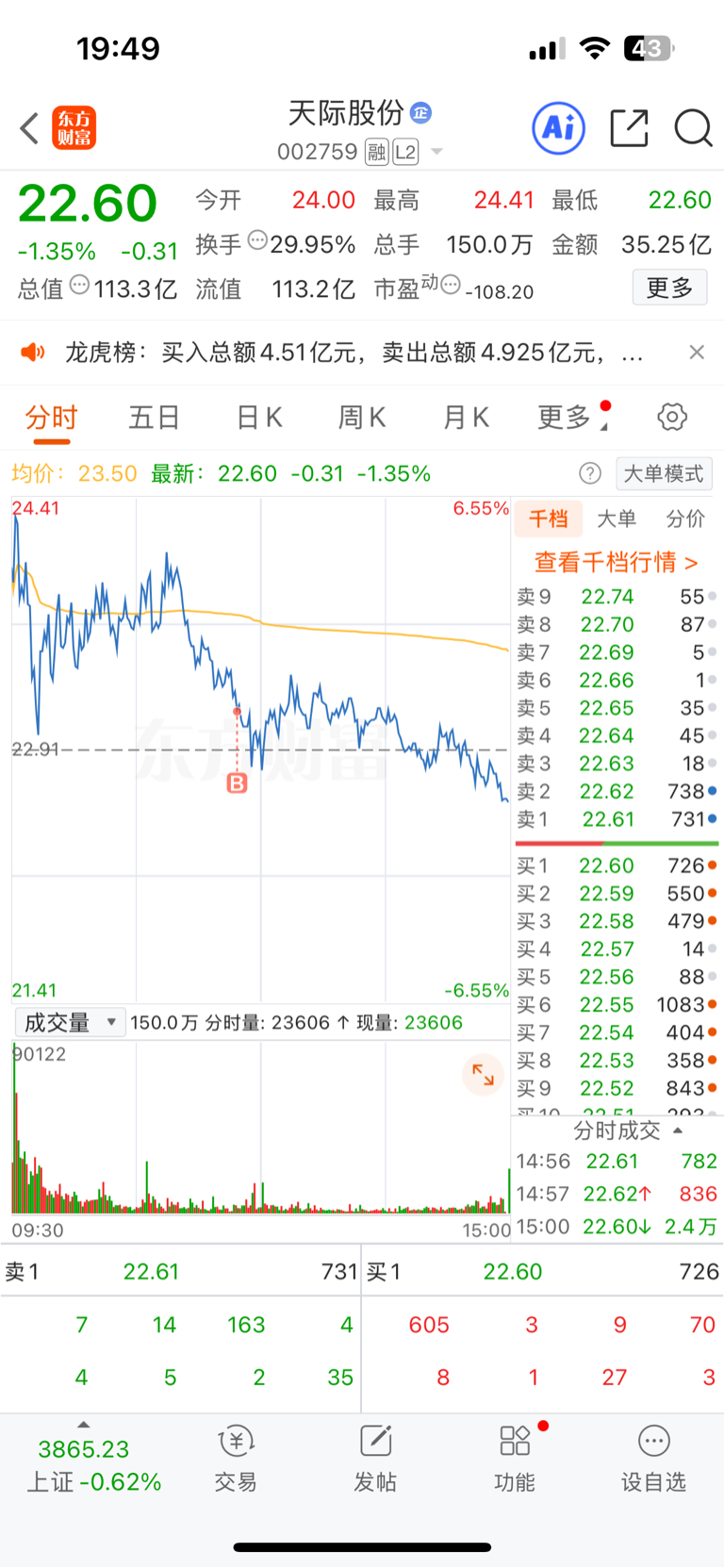 $天际股份(SZ002759)$ 明天能保本出来吗