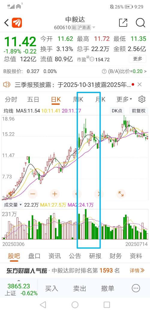 涨价题材参考中毅达。中敦当时高位放巨量(下面这张图中成交量最大的那一天)的时候,