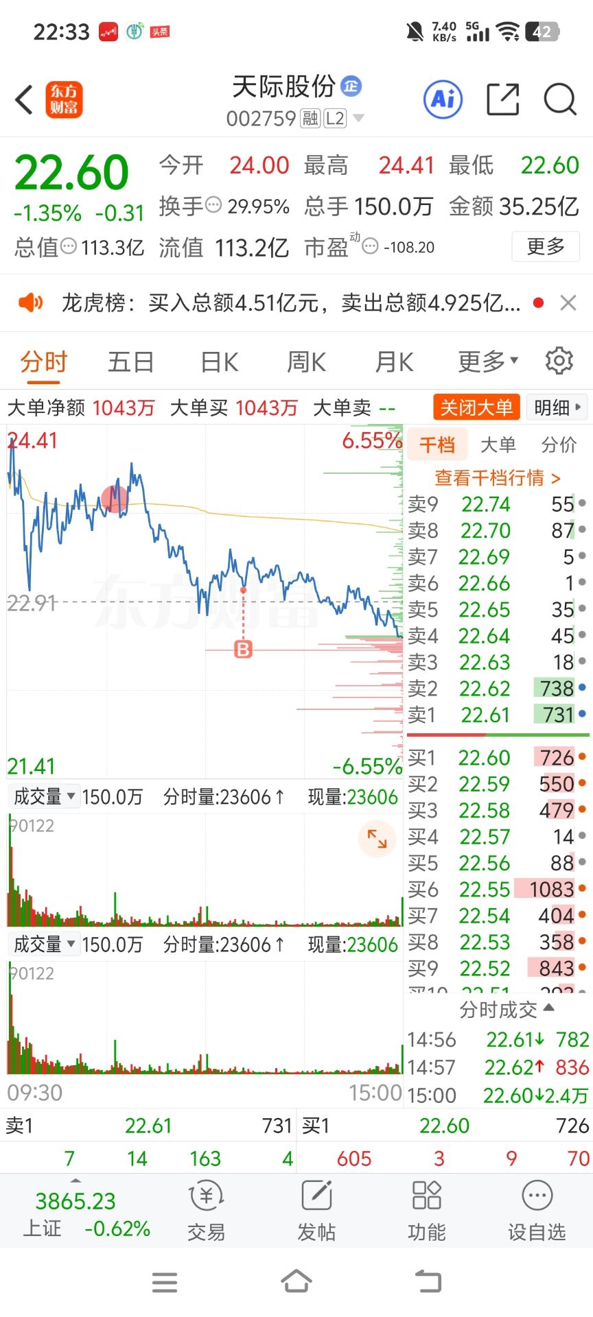$天际股份(SZ002759)$ 只低吸了一笔,后面的两笔撤单了,主要是大盘太差了。但是无论行情如何,我的模式证明没有问题,明天只要大盘不是特别差,还是有信心反弹的!
