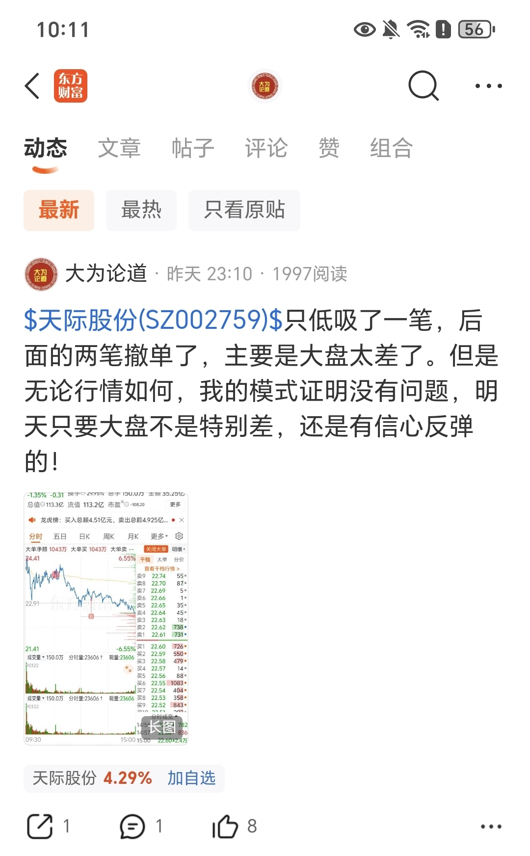 温馨提示: 1.根据《证券法》规定,禁止编造、传播虚假信息或者误导性信息,扰乱证券市场;2.用户在本社区发表的所有资料、言论等仅代表个人观点,与本网站立场无关,不对您构成任何投资建议。用户应基于自己的独立判断,自行决定证券投资并承担相应风险。《东方财富社区管理规定》