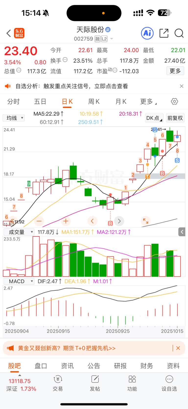 $天际股份(SZ002759)$ 感谢天际,这波赚了50个点