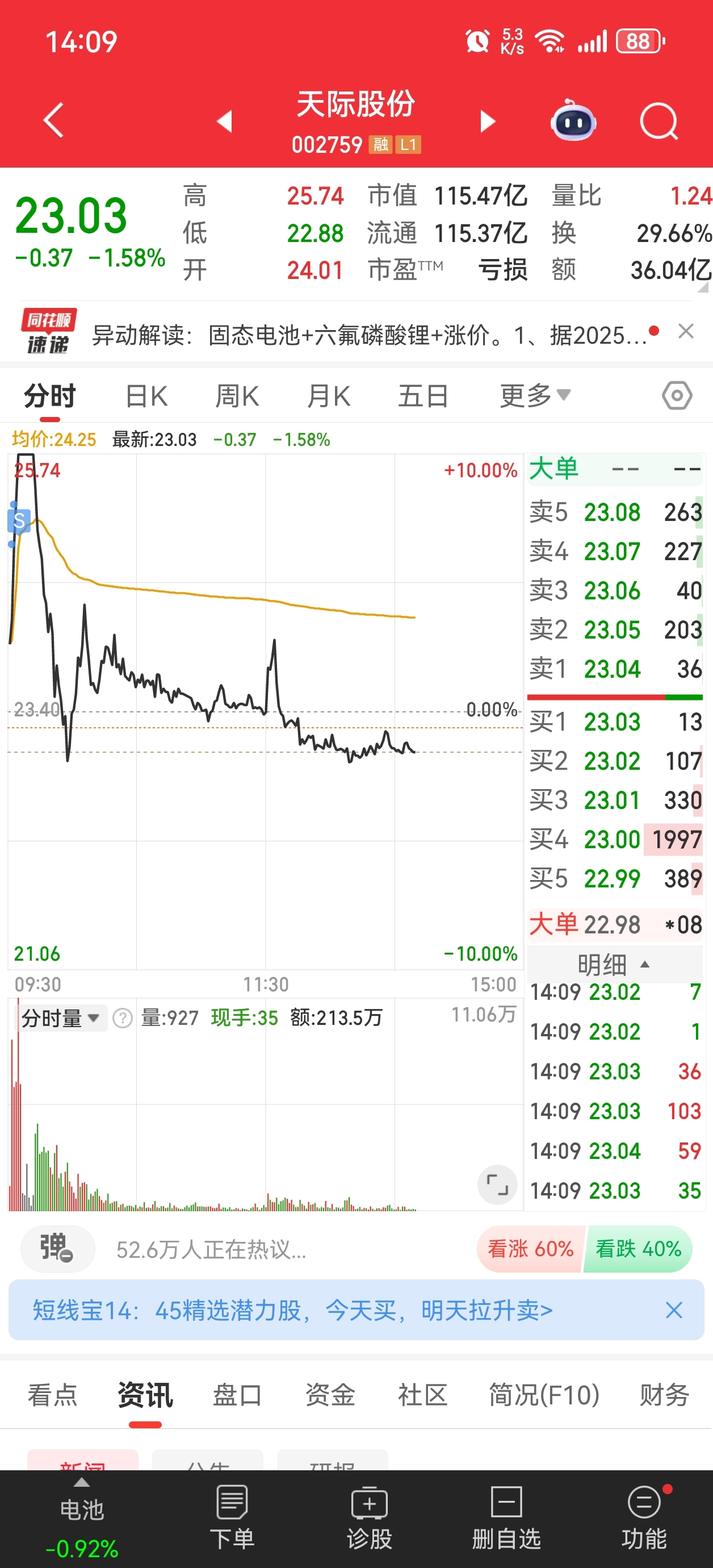 $天际股份(SZ002759)$ 早上以为卖飞,没想到卖对了,这种量化大本营直接缩量拉涨停的还是小心点好,最近都让量化割怕了