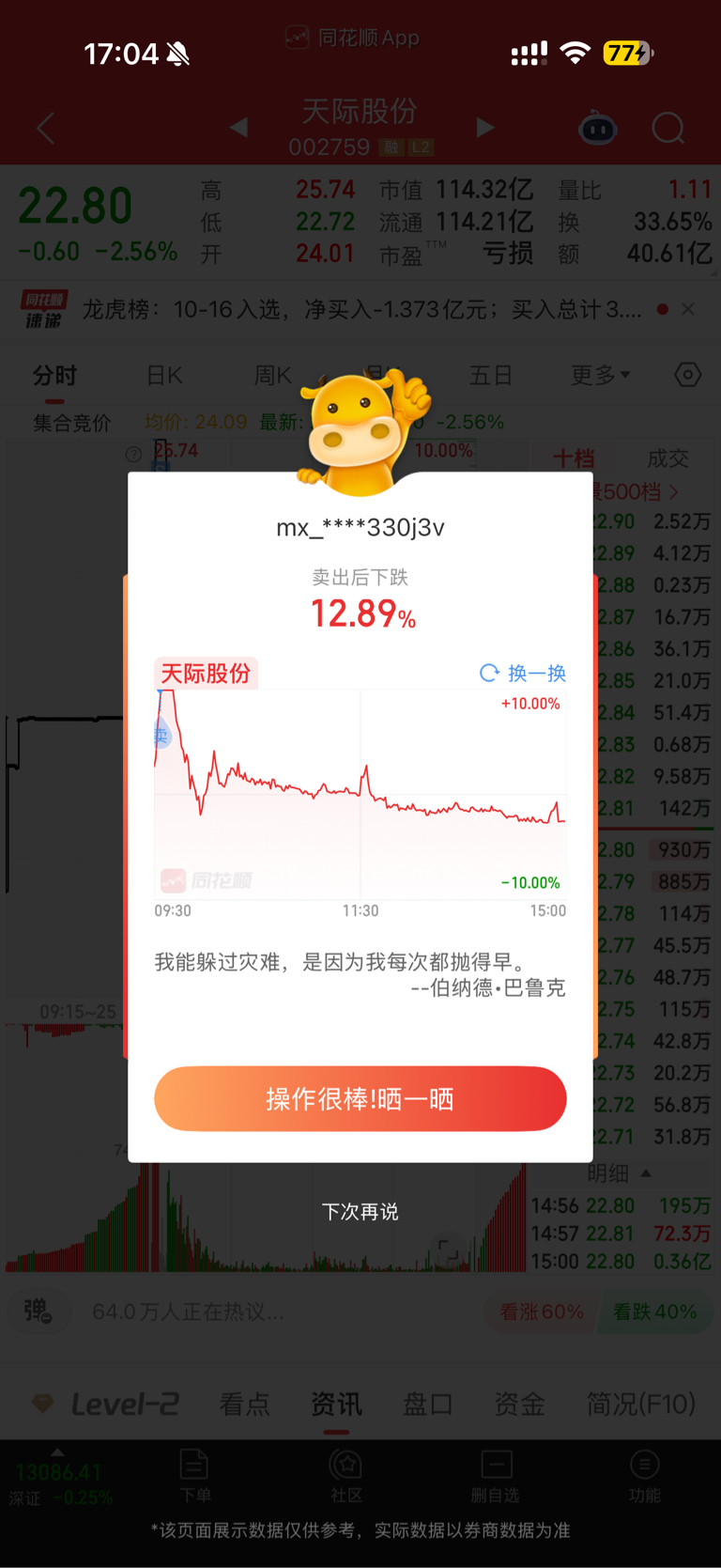 温馨提示: 1.根据《证券法》规定,禁止编造、传播虚假信息或者误导性信息,扰乱证券市场;2.用户在本社区发表的所有资料、言论等仅代表个人观点,与本网站立场无关,不对您构成任何投资建议。用户应基于自己的独立判断,自行决定证券投资并承担相应风险。《东方财富社区管理规定》