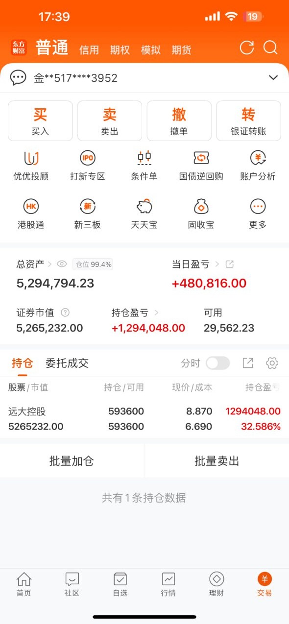 - 紧追市场主线不偏移,在底部买、顶部卖,精准捕捉当下热点强势股,当初三十万起步炒股,今天已经做到 500 多万。入场时机至关重要,几乎每天都能发现新机会,14 号入的远大控股已经三板了。