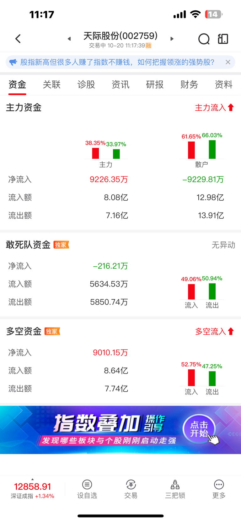 $天际股份(SZ002759)$ 看资金一直在流入,从4000多万现在到9000多万了什么情况,主力抄底散户砸盘