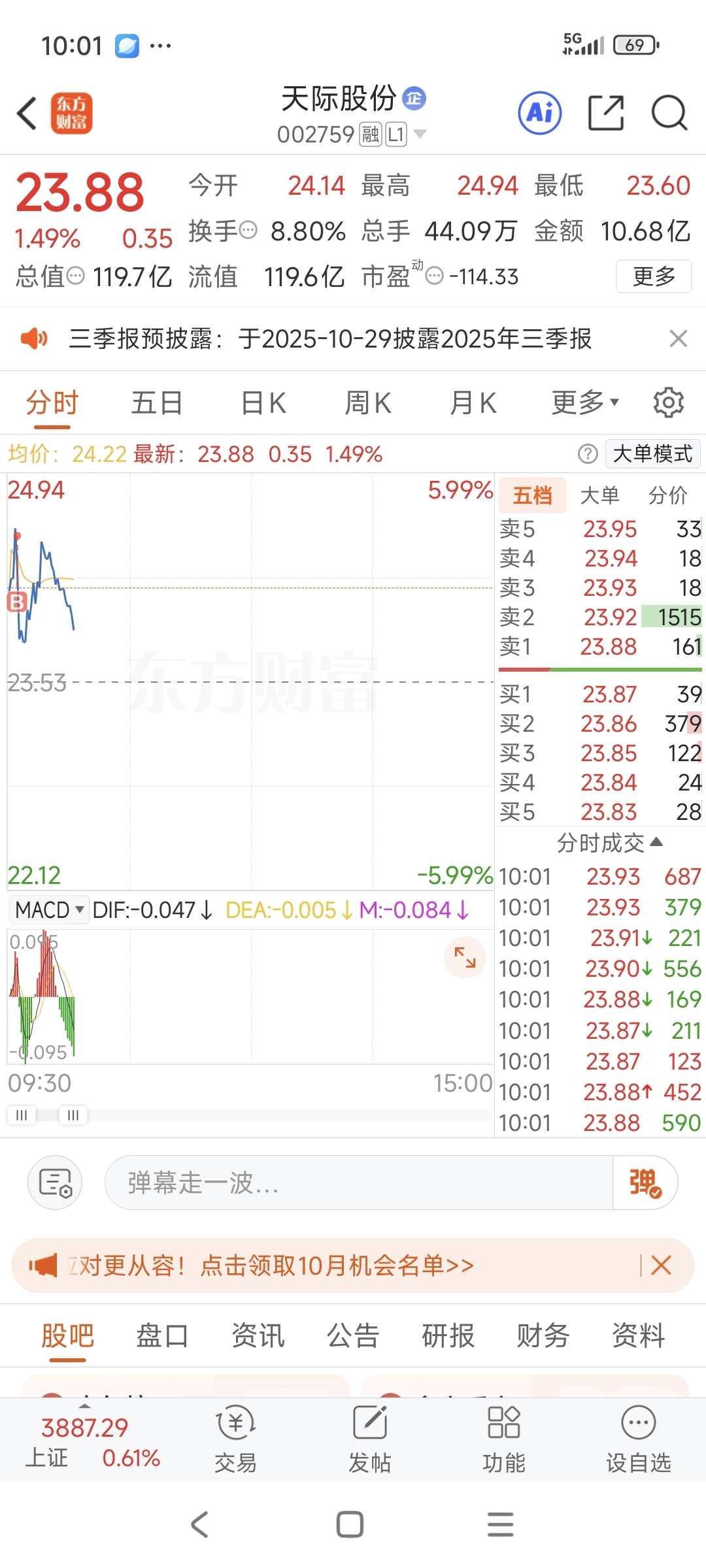$天际股份(SZ002759)$ 都怪我买了,他就跌了