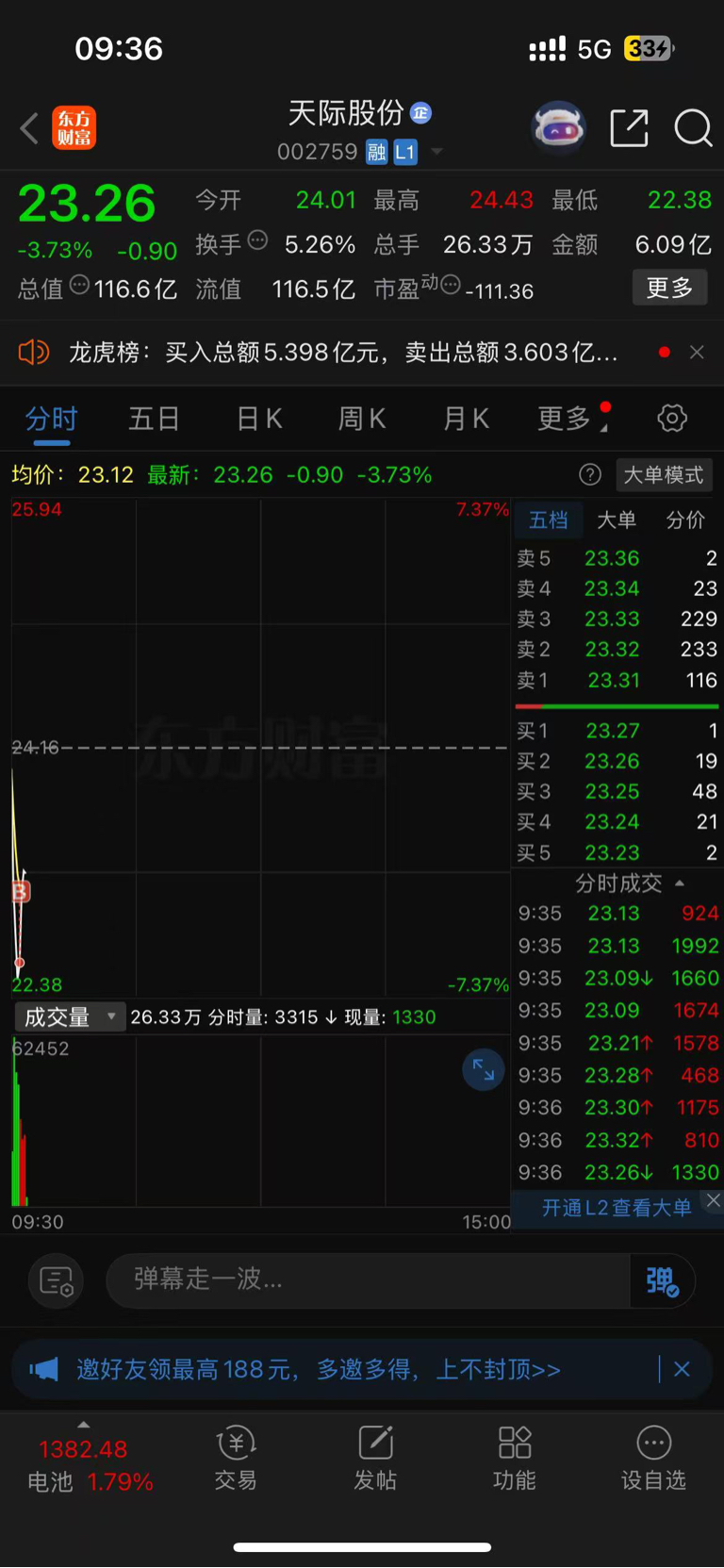 天际昨天早盘我抄底勾的,我只想说今早我卖飞了均价24.1元清掉了,赚了有了6个点