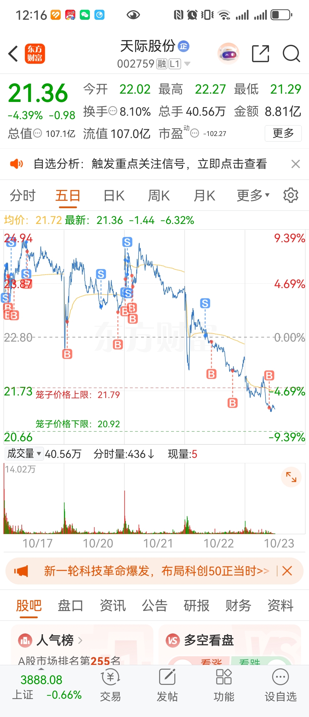 $天际股份(SZ002759)$ 又补了一点仓,也不知道是对是错,在格局一天,逢低就加点,明天还低开就全出了,19.5的本,还能坚持格局最后一天