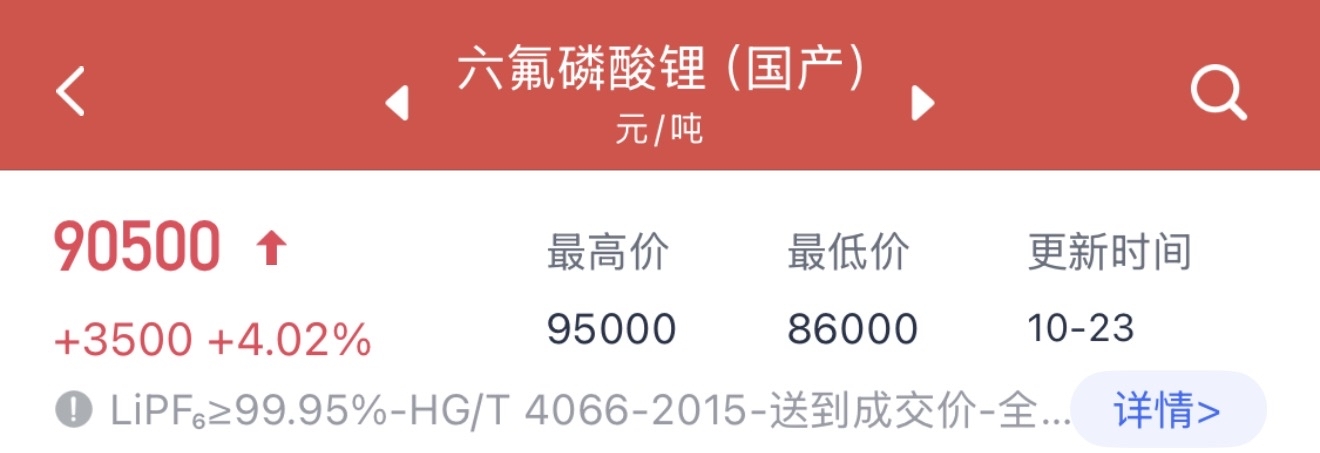 $天际股份(SZ002759)$ 六氟磷酸锂价格暴涨