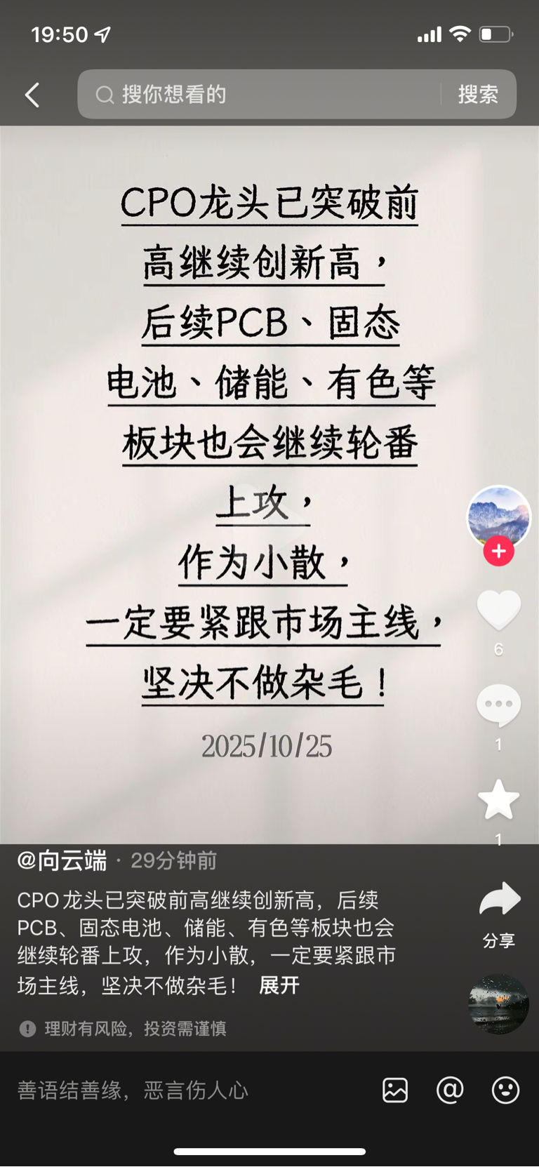 温馨提示: 1.根据《证券法》规定,禁止编造、传播虚假信息或者误导性信息,扰乱证券市场;2.用户在本社区发表的所有资料、言论等仅代表个人观点,与本网站立场无关,不对您构成任何投资建议。用户应基于自己的独立判断,自行决定证券投资并承担相应风险。《东方财富社区管理规定》